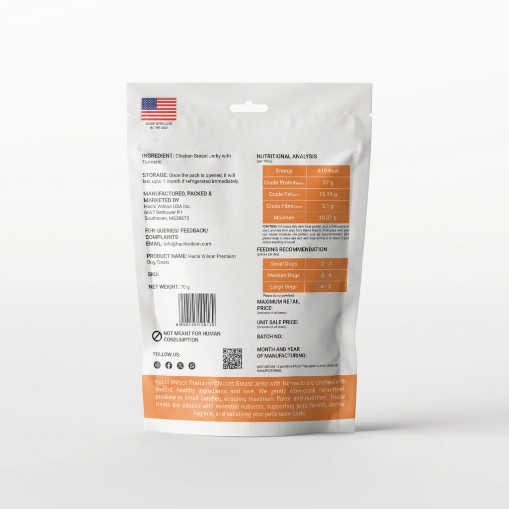 Give your dog a treat thatโs both delicious and functional with Dog Treats Chicken Breast Jerky with Turmeric, crafted for pet parents who prioritize clean, high-quality nutrition. Made with lean, high-protein chicken breast and enriched with turmeric, this premium jerky combines natural goodness with powerful health benefits in every bite.
