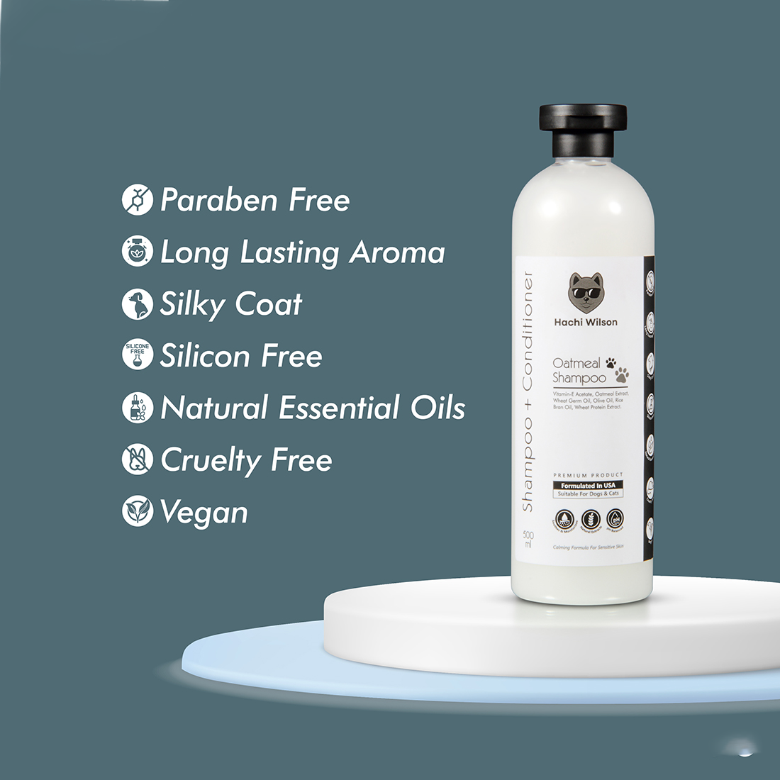 Free from parabens, sulfates, silicones, and artificial dyes, it offers a safe and irritation-free bathing experience for pets of all breeds and sizes. With its mild, natural fragrance, it keeps your pet smelling fresh without overwhelming scents. Designed for comfort, safety, and visible results, Hachi Wilson Oatmeal Dog Shampoo transforms every bath into a calming and nourishing ritual for your pet.