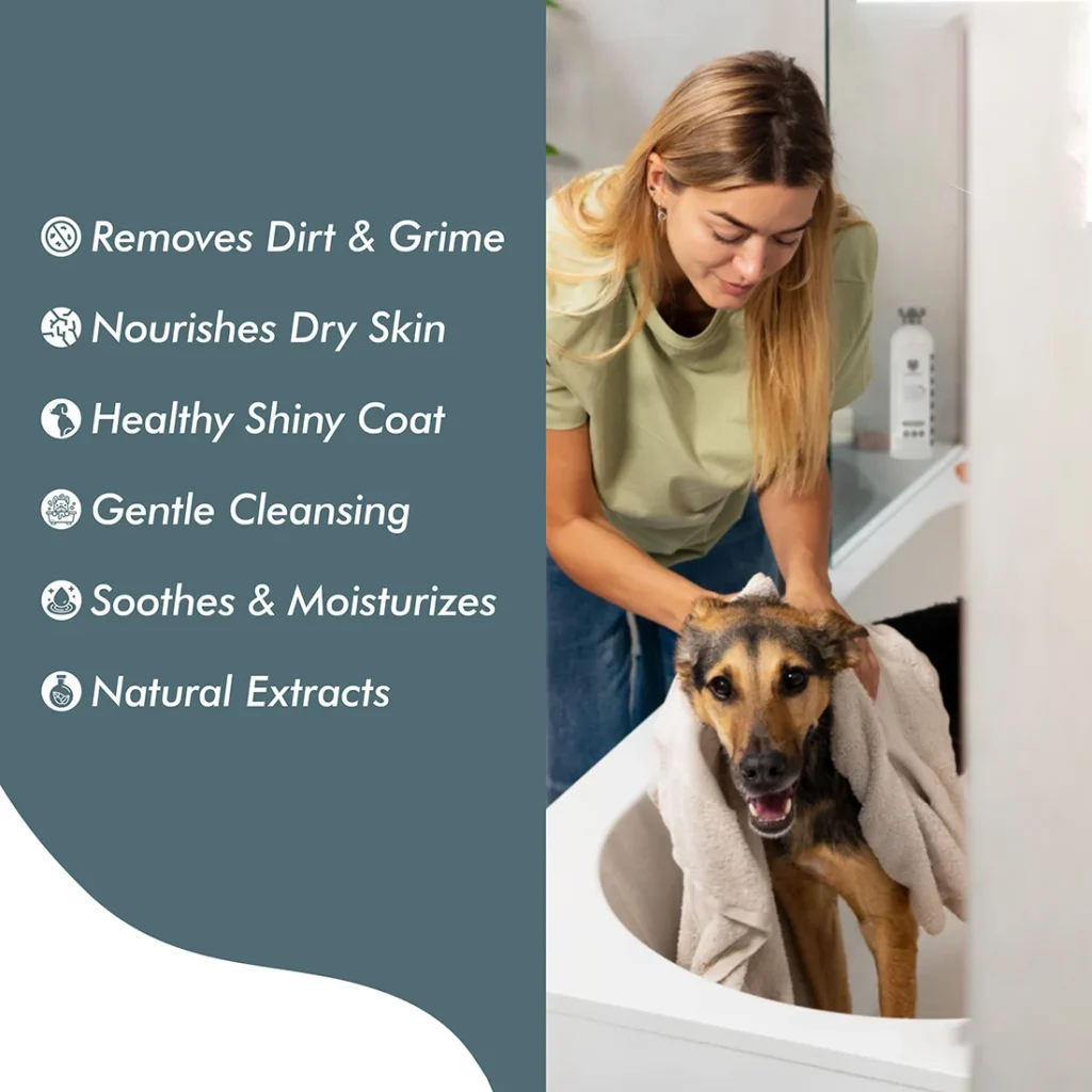 Unlike ordinary shampoos that strip away natural oils, this advanced formula maintains your petโs natural skin balance while providing deep cleansing. It effectively removes dirt, grime, and excess oil without causing dryness or irritation, making it perfect for regular use. The presence of colloidal oatmeal helps soothe itching, reduce redness, and calm irritated skin, especially for pets prone to allergies or skin sensitivities.
