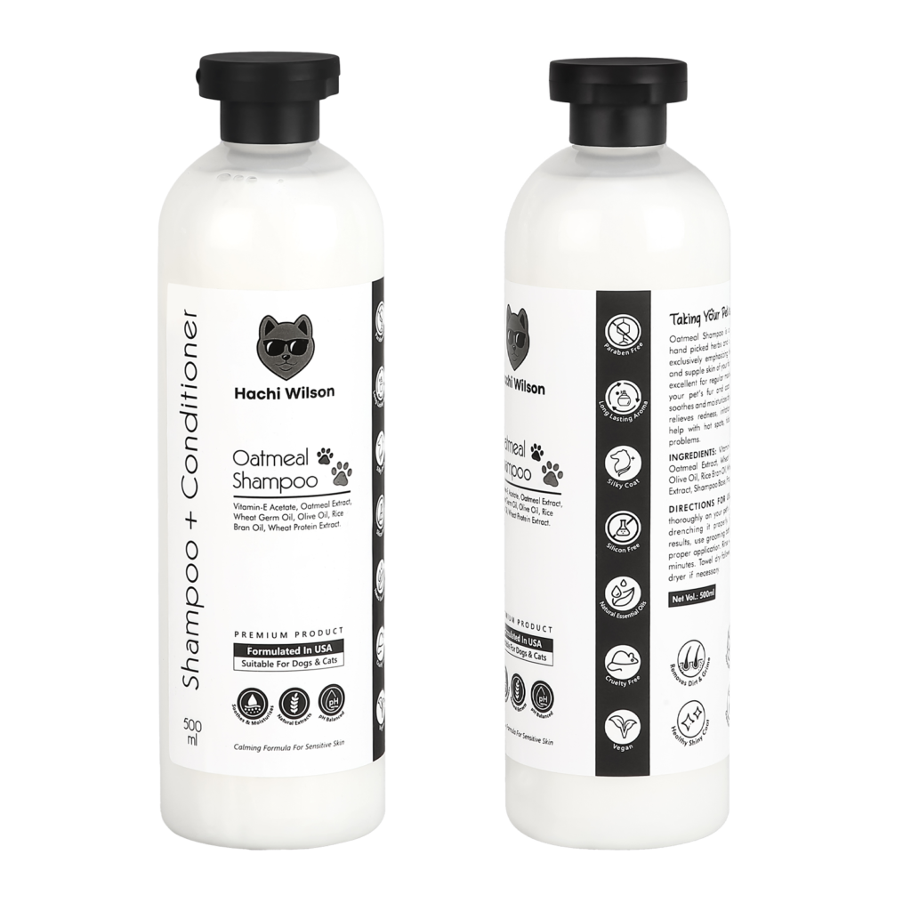 Give your furry companion a soothing and refreshing grooming experience with Hachi Wilson Oatmeal Dog Shampoo, a premium formula designed to cleanse, nourish, and protect your petโs skin and coat. Proudly made in the USA, this shampoo is crafted using natural ingredients like oatmeal extract, olive oil, and wheat germ oil to deliver gentle yet effective care for dogs with sensitive, dry, or itchy skin.