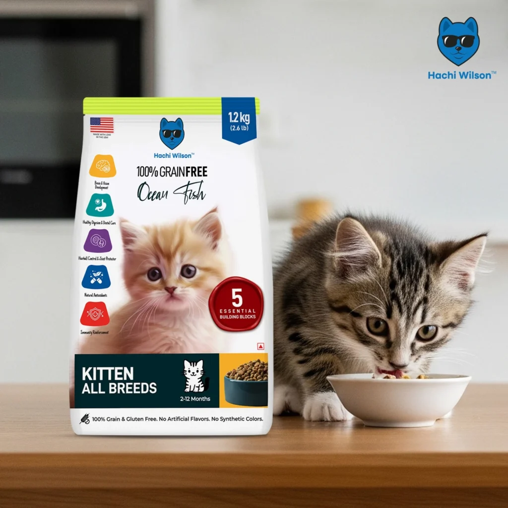 - Premium Ocean Fish Proteinย โ supports lean muscle growth and overall kitten development.