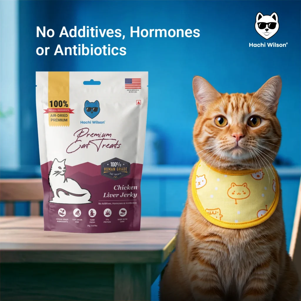 Hachiwilson treats are made from 100% human-grade chicken liver—air-dried in the USA without any fillers, grains, preservatives, hormones, or antibiotics. No gimmicks, just real, wholesome nutrition your cat will love.