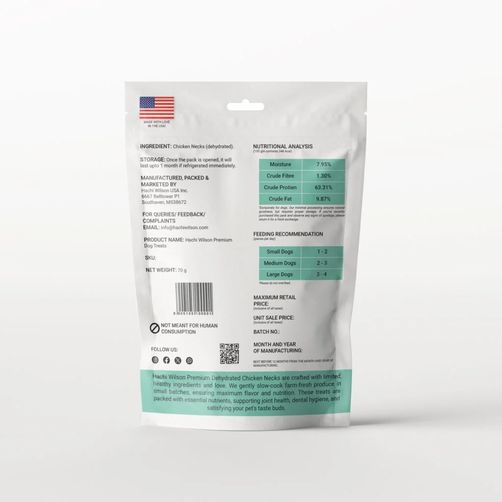 Hachi Wilson Dehydrated Chicken Necks Dog Treats are crafted using a single, high-quality ingredient—100% dehydrated chicken necks. Prepared through a slow, controlled dehydration process, these Dog Treats naturally retain protein, minerals, and essential nutrients without the use of artificial additives or preservatives. Their crunchy texture supports dental hygiene by helping reduce plaque buildup while offering a flavourful, species-appropriate reward for dogs of all breeds.