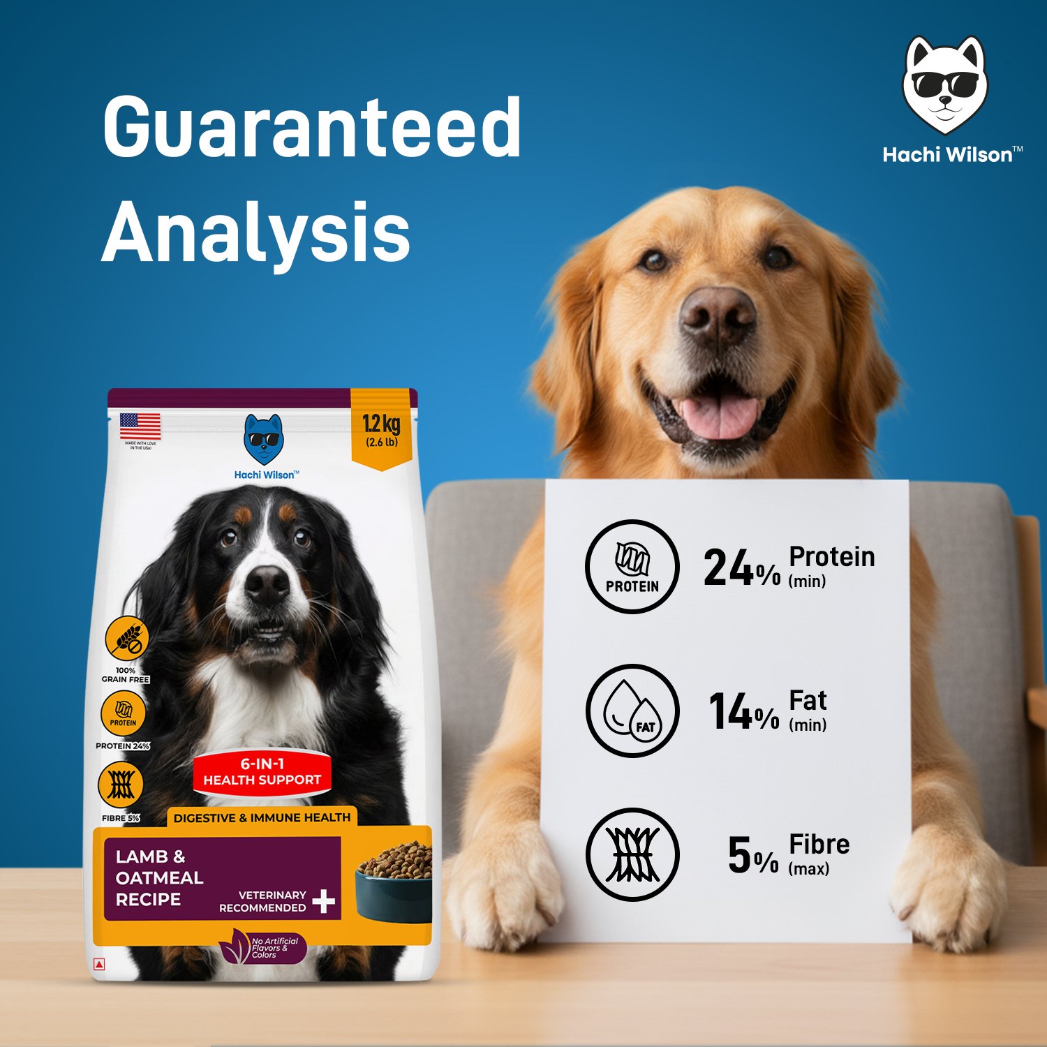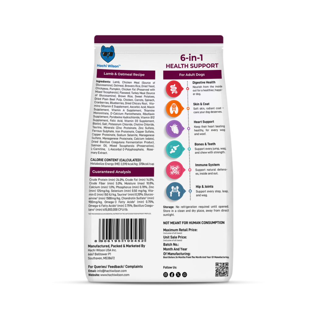 Give your dog complete and balanced nutrition with Hachi Wilson Dog Food โ Lamb and Oatmeal, a premium formula carefully crafted to support overall health, vitality, and happiness. Made in the USA with high-quality ingredients, this recipe combines protein-rich lamb with wholesome oatmeal to provide a perfect balance of nutrition, taste, and digestibility for adult dogs.